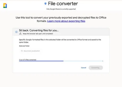 Enkripsi sisi klien mendukung eDiscovery dan portabilitas data bagi pelanggan. Setelah mengekspor data dengan Vault atau tool ekspor data (takeout), admin dapat mendekripsi konten yang sebelumnya dienkripsi sisi klien. Google Workspace baru saja meluncurkan fitur File Converter yang dapat mengonversi Google Sheets yang telah didekripsi menjadi berkas Microsoft Excel. Mari simak ulasannya berikut ini!