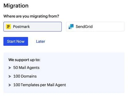 Hanya butuh beberapa langkah untuk memulai: Cukup masuk ke pengaturan ZeptoMail, masukkan API Key dari akun Postmark atau SendGrid Anda, dan klik Migrate. ZeptoMail akan bekerja secara otomatis menarik seluruh data Anda. Jika terjadi kegagalan karena masalah teknis kecil, tersedia tombol Retry yang memungkinkan Anda mengulang proses tanpa harus memulai dari awal.