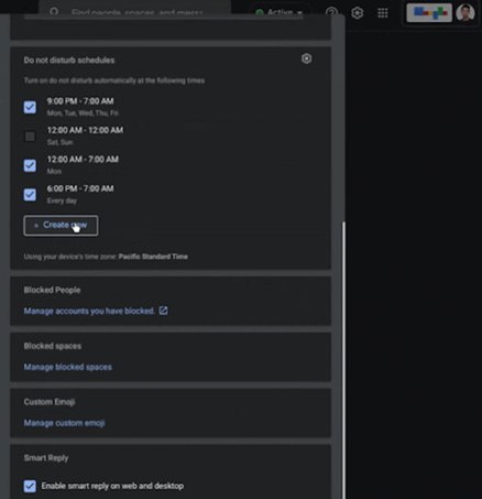 Selain menyetel durasi khusus untuk “Do Not Disturb” di Google Chat, kini Anda dapat menyetel jadwal berulang agar tidak terganggu oleh notifikasi Chat di web, Android, dan iOS. Fitur baru ini dapat Anda manfaatkan untuk membisukan pemberitahuan selama jam istirahat reguler Anda, atau menyetel “ Do Not Disturb ” secara otomatis selama akhir pekan saat jauh dari meja Anda.