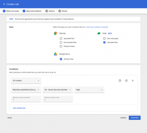 Google sendiri telah menerapkan aturan DLP pada beberapa edisi Workspace. Dengan memanfaatkan DLP Workspace, Anda dapat membuat dan menerapkan aturan untuk mengontrol konten yang dapat dibagikan pengguna. DLP memberi Anda kontrol atas apa yang dapat dibagikan pengguna dan mencegah paparan informasi sensitif yang tidak diinginkan seperti nomor kartu kredit atau nomor identitas.