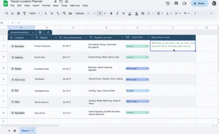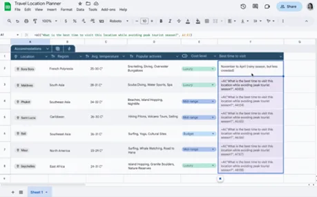 Kini, Google meningkatkan kemampuan fungsi AI tersebut. Fungsi AI di Sheets sekarang secara otomatis didasarkan pada hasil dari Google Search, memungkinkannya mengakses informasi terkini dari web untuk menjawab prompt Anda.