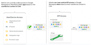 Akses kontekstual untuk API memungkinkan administrator yang sudah ditunjuk untuk memperluas kontrol akses konteks CAA pengguna atau perangkat yang ada. Nantinya, akses tersebut akan memudahkan pemantauan admin terhadap end-user yang mencoba mengakses Google Workspacce Applications melalui aplikasi Google lain maupun non-Google.