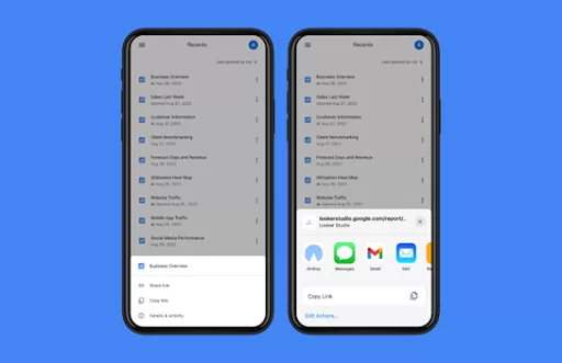 Pembaruan aplikasi Looker ini juga akan membantu Anda berkolaborasi melalui perangkat seluler. Cukup dengan satu klik saja, Anda sudah bisa membuat tautan ke laporan yang dapat diakses oleh orang lain. Selain itu, Anda juga dapat mengakses semua laporan yang dibagikan kepada Anda di folder ‘Team Workspaces’ dan ‘Shared with me’.