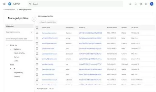 Kemampuan baru ini memberikan administrator Anda lebih banyak insight mengenai profil pengguna Chrome di dalam domain mereka. Laporan ini mencakup daftar profil terkelola baru dan halaman detail tempat administrator dapat menemukan informasi seperti detail profil, versi browser, kebijakan yang diterapkan, ekstensi yang dipasang, dan lainnya.