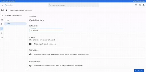 Looker kini memungkinkan Anda mengelola rangkaian pengujian, eksekusi, dan konfigurasi CI secara langsung dalam satu antarmuka pengguna terintegrasi. Hal ini memungkinkan pemantauan status eksekusi CI yang mudah, memanfaatkan validator canggih untuk akurasi, dan memicu eksekusi CI secara manual atau otomatis melalui pull requests maupun penjadwalan.