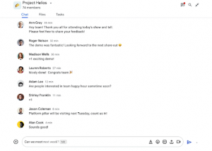 Banyak pelanggan Google Workspace yang mengandalkan Chat untuk kebutuhan komunikasi langsung mereka. Dengan berbagai fitur dan kapabilitas di dalamnya, Chat dapat membantu Anda tetap menyeimbangkan prioritas kerja dengan mudah tanpa kehilangan konektivitas dengan rekan kerja. Ditambah dengan Smart Compose, Anda bisa menulis pesan balasan lebih cepat dan lebih mudah, sehingga dapat menghemat waktu dan tenaga.